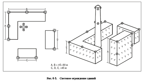 При светоограждении объекта, имеющего большую протяженность, или группы близко расположенных