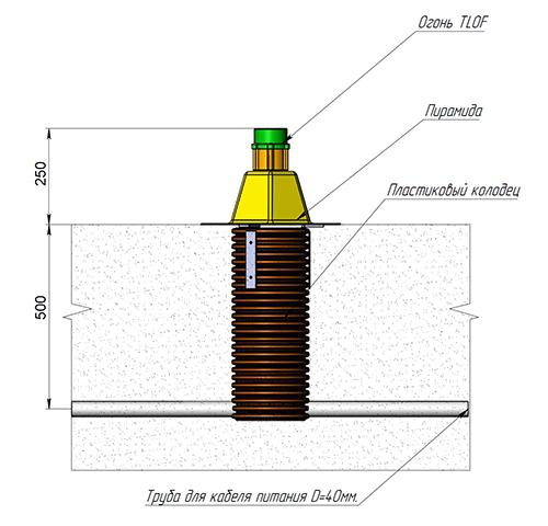 Установка прожектора подсветки зоны TLOF на грунт на пирамиду